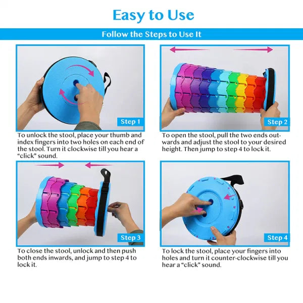 This space-saving stool is a must-have for anyone on the go! Use it at home, in the office, or take it with you while traveling, and enjoy a comfortable seat wherever you are.